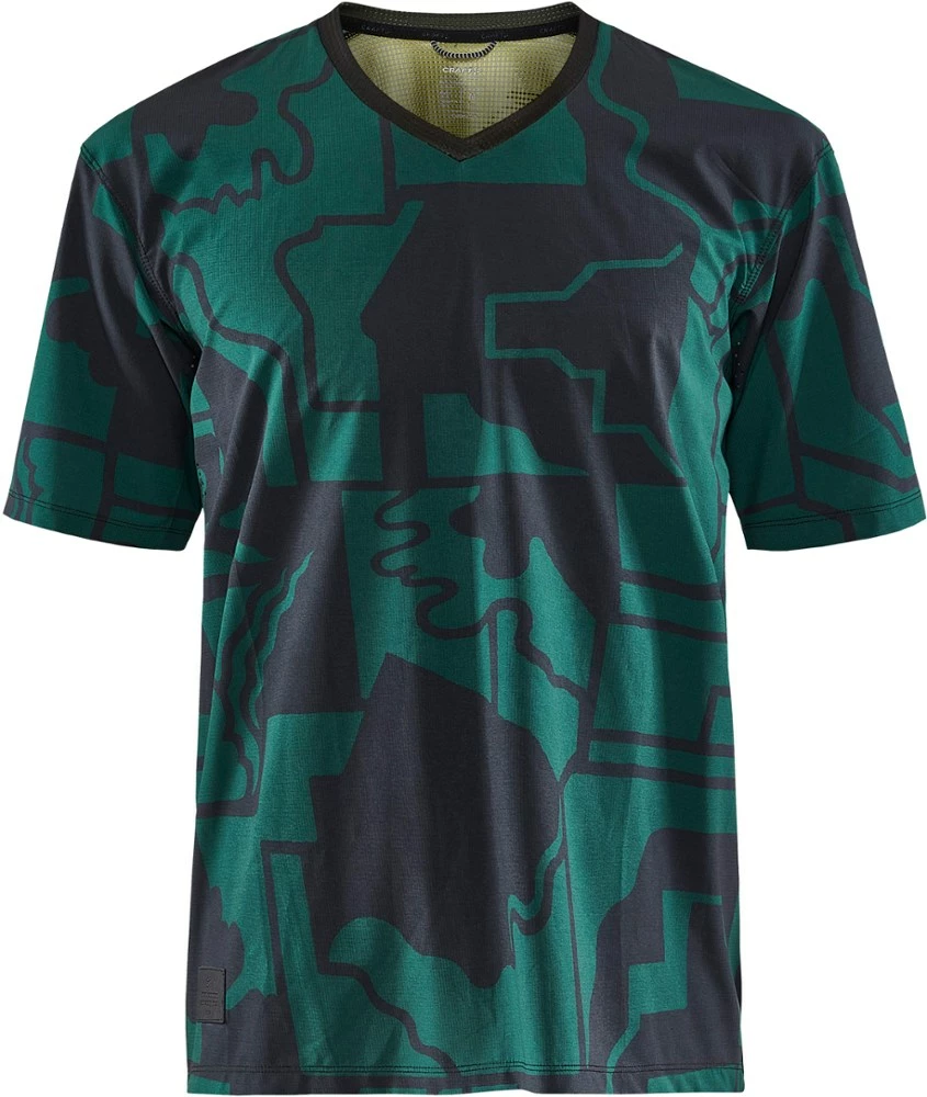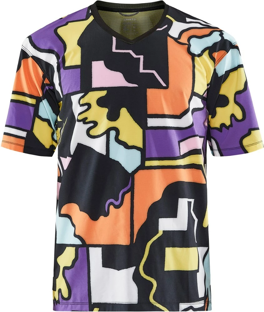 An advanced bike jersey with wind-protective fabric up front and mesh on the back to keep you cool and dry on intense MTB and gravel rides, the Craft Adv Bike Offroad T-shirt offers a loose fit.