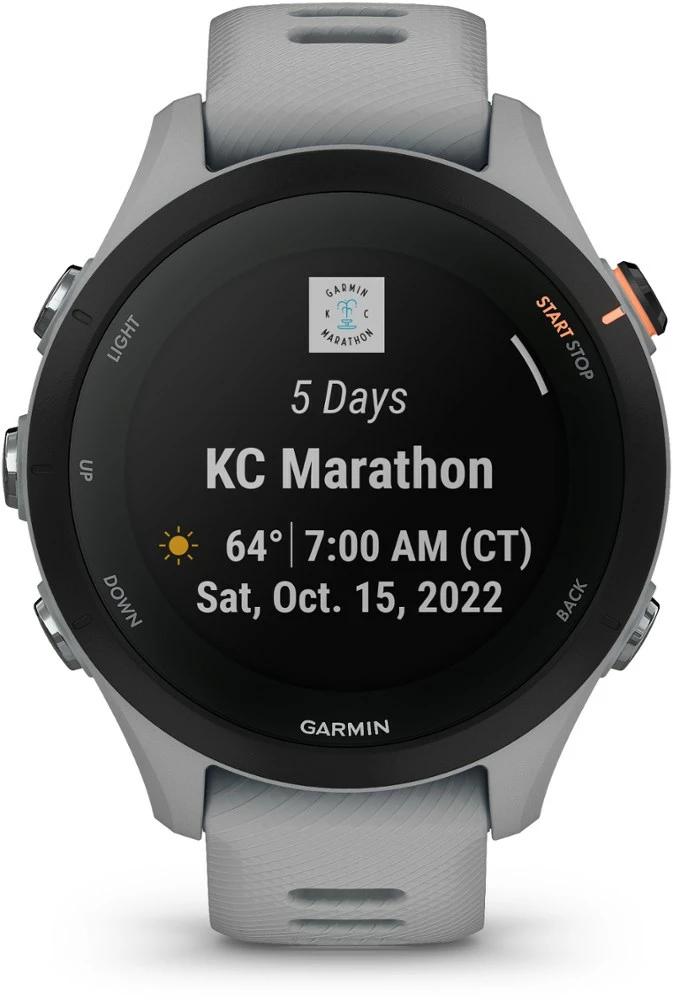 Run at a higher level. The smaller-size Garmin Forerunner 255S watch helps you with training status, race-day planning, GPS, and workouts that adapt to your performance and goals.