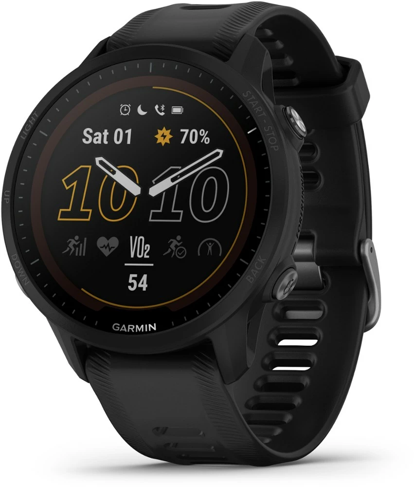 Lead the pack with Garmin Forerunner 955 Solar. This GPS running and triathlon smartwatch features Power Glass™ solar charging to extend battery life—perfect for pushing the limits on long workouts.
