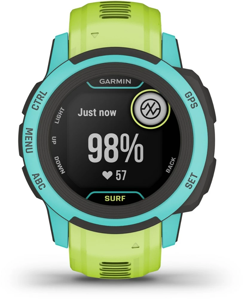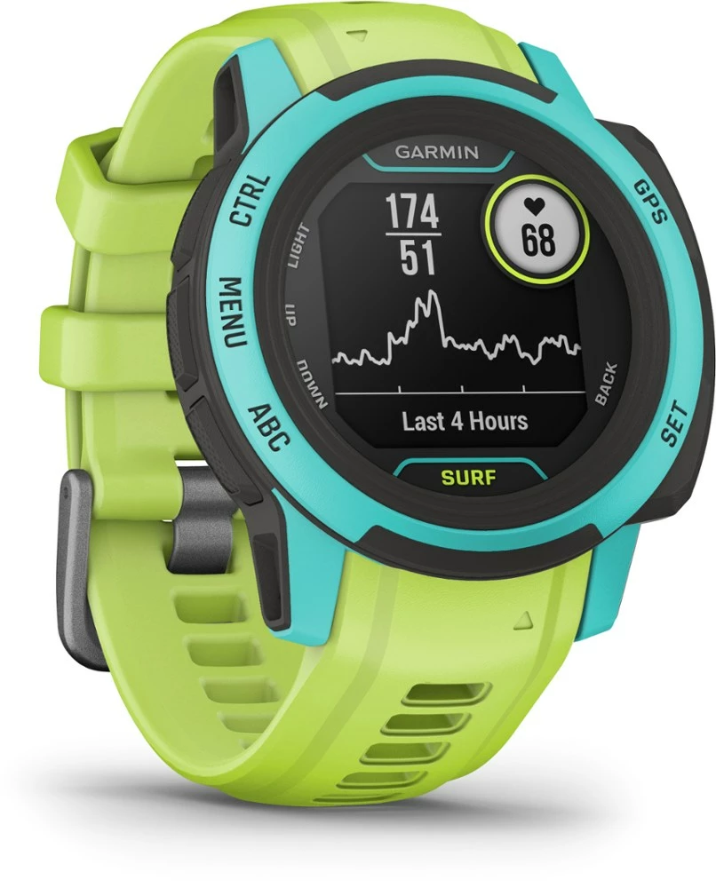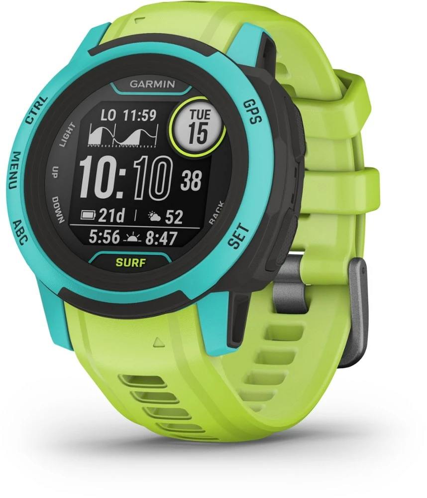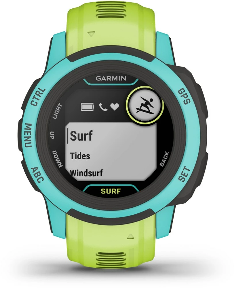 Ready to ride a wave? The rugged Garmin Instinct 2S Surf Edition GPS smartwatch has everything you need for fun on the water, such as tide data and surfing, windsurfing and kiteboarding activities.