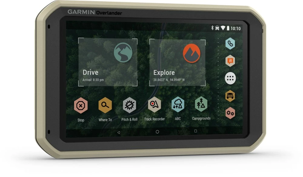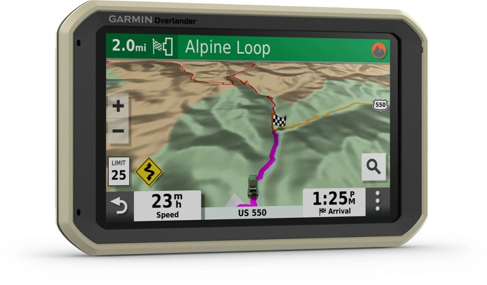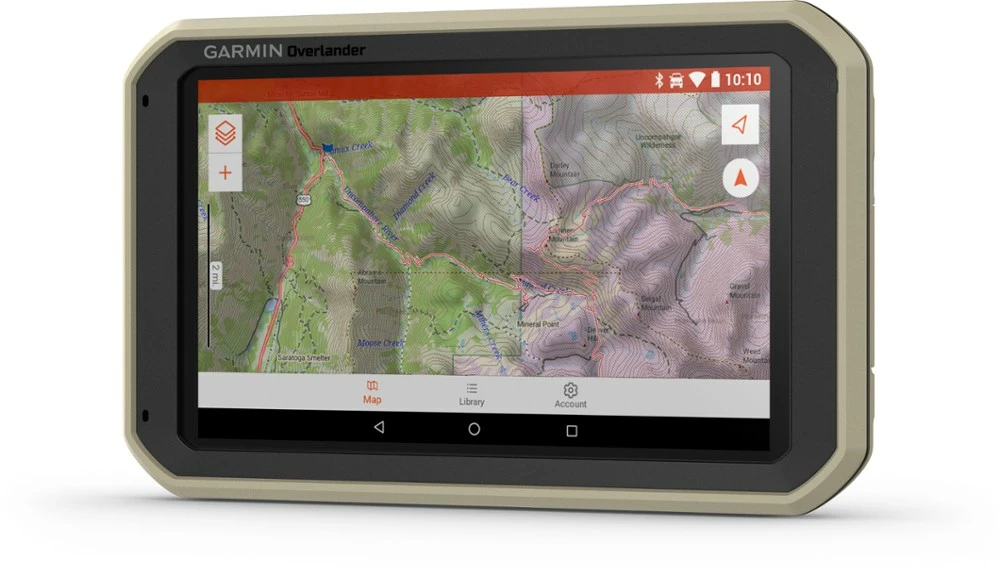Built to go wherever the journey takes you, the rugged Garmin Overlander GPS all-terrain navigation device features turn-by-turn directions for on-road navigation and topo maps for off-grid guidance.