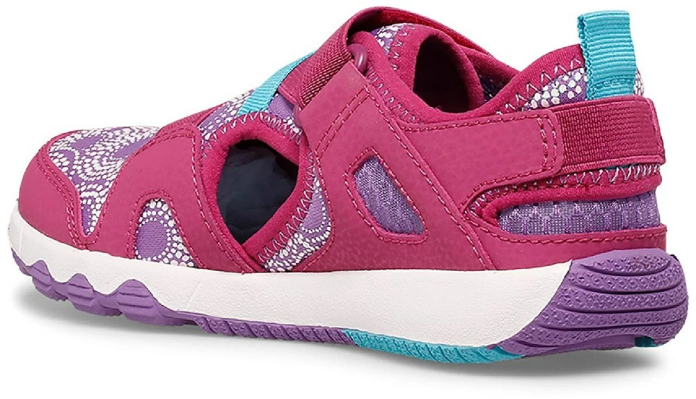 With a pattern that changes colors when wet, the kids’ Merrell Hydro Free Roam Monarch water shoes keep young rock skippers and water explorers comfortable, secure and utterly delighted.
