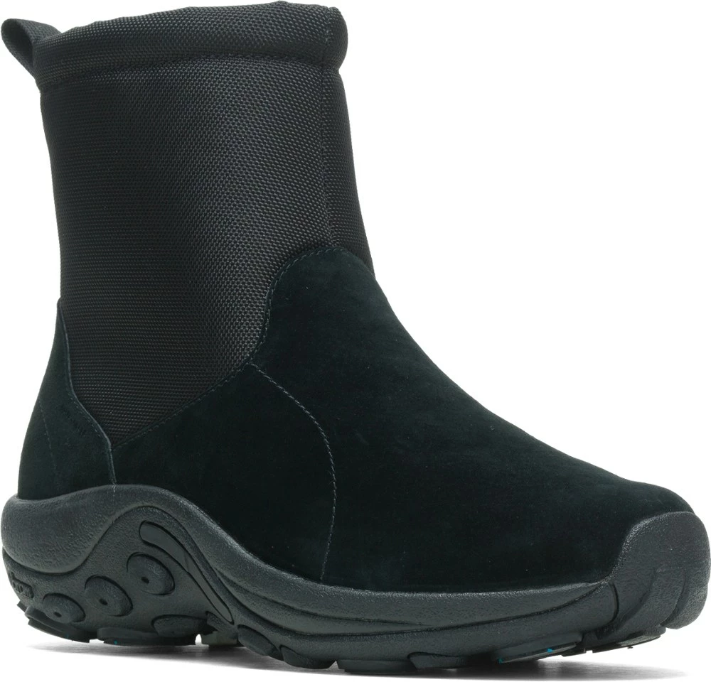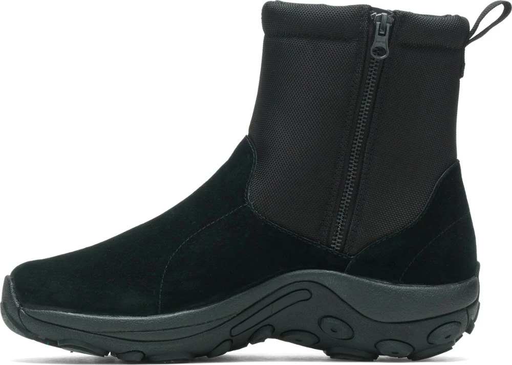 Waterproof and insulated low-maintenance winter boots, these Merrell Jungle Mid Zip Polar Waterproof Ice+ boots have 200 g insulation for cozy comfort and Vibram® Arctic Grip™ outsoles for traction.