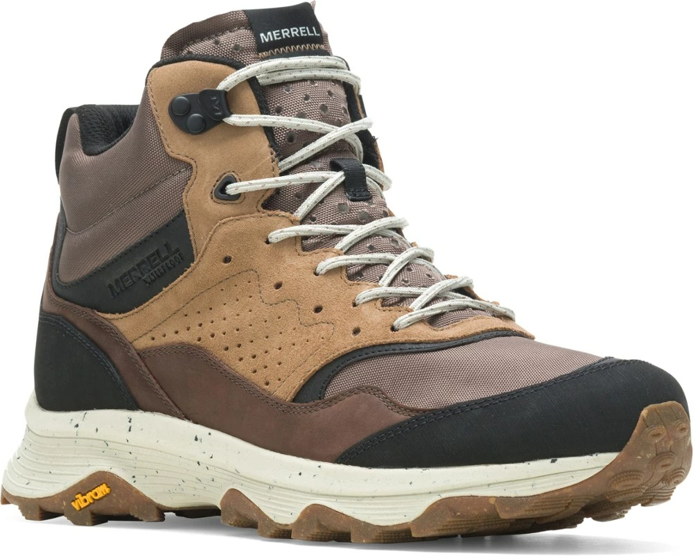 Function and form come together seamlessly in the men’s Merrell Speed Solo Mid waterproof hiking boots, with performance attributes throughout and waterproof suede uppers to keep you dry.