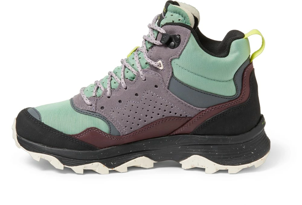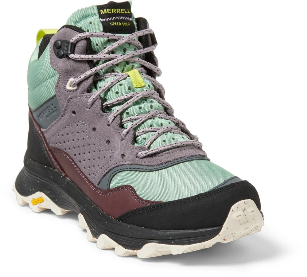 Seamlessly combining function and form, Merrell Speed Solo Mid women’s waterproof hiking boots offer abundant performance attributes throughout; plus, the waterproof suede uppers keep your feet dry.