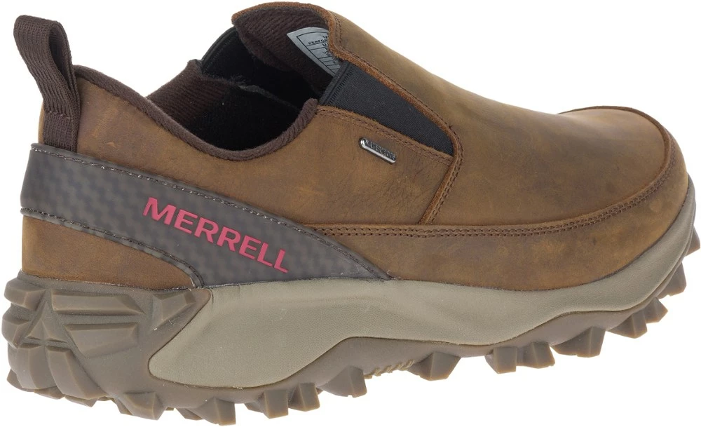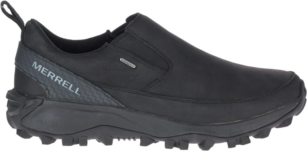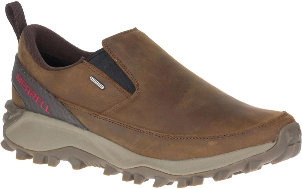 Easier on and off than boots, the men’s Merrell Thermo Kiruna Moc Waterproof shoes get you out into the cold, frozen world with heat-trapping warmth, waterproof protection and winter-optimized grip.