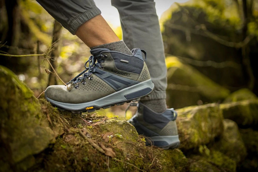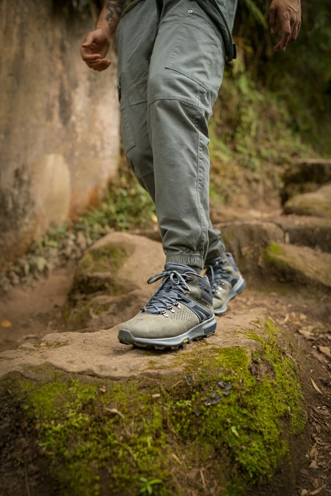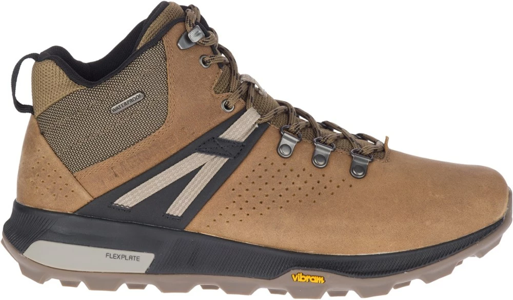The combined waterproofness and sneaker-like fit of the men’s Merrell Zion Peak Mid Waterproof hiking boots maintains your trail comfort with Vibram® Megagrip soles laying into all types of terrain.